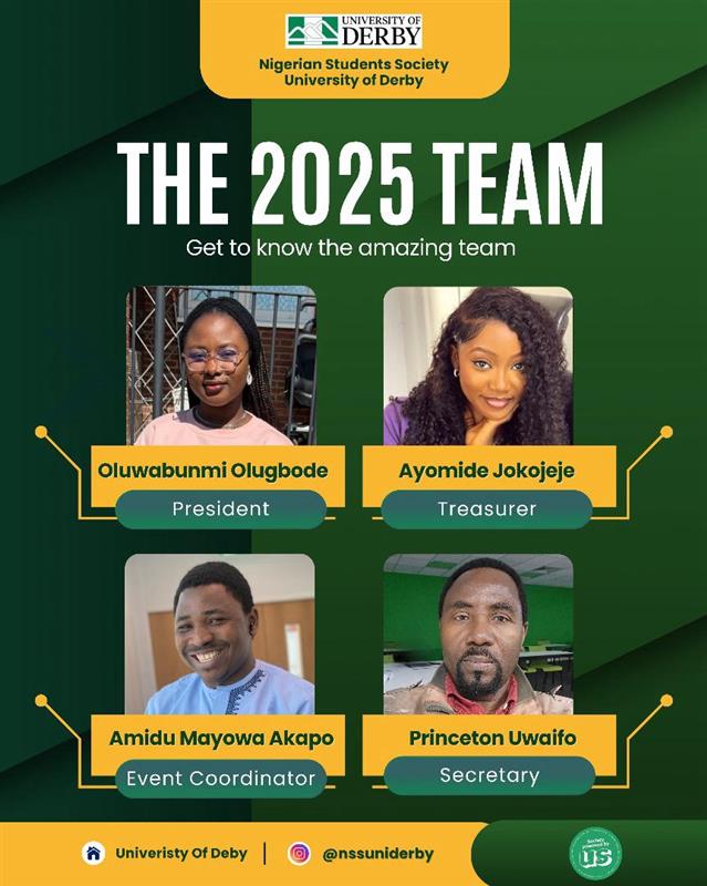 Nigerian Students WELCOME TO UNIVERSITY OF DERBY NIGERIAN STUDENTS COMMUNITY!!! We're a vibrant community dedicated to promoting Nigerian culture, fostering unity among Nigerian students, and creating a supportive network for academic and personal growth. Join us to stay updated!